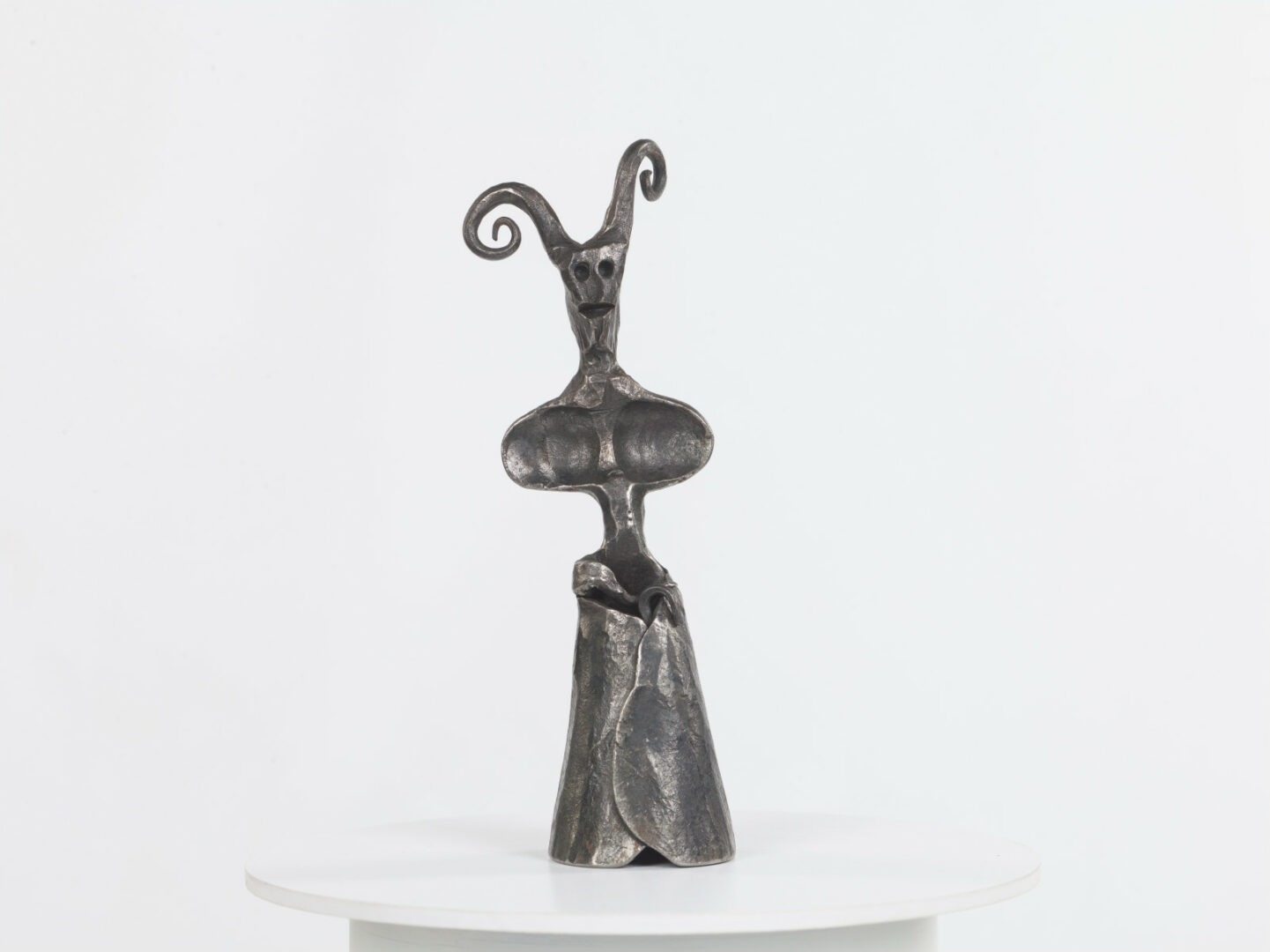 Kovaná plastika – čert, zároveň zvonec, Vyrobená z ocele, spracovaná kovaním v čiernej povrchovej úprave, plastika je z jedného kusu ocele.