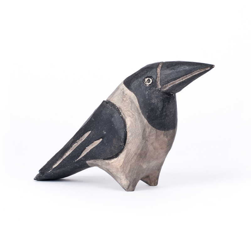 Plastika vrana je ručne vyrezávaná a maľovaná.