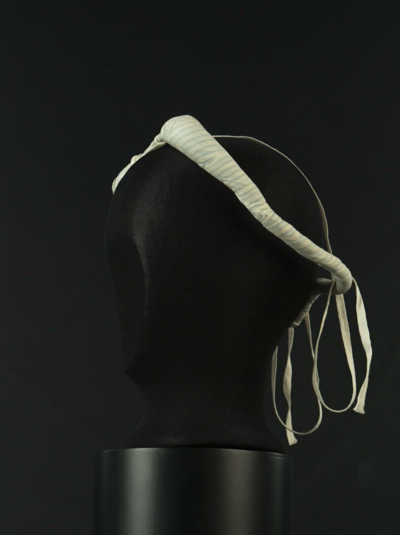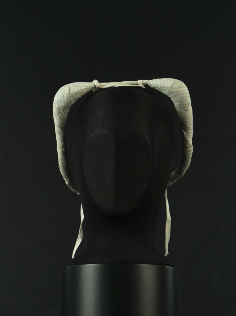 Podložka je zhotovená z drôtu, ktorý je obalený zbytkami bavlnenej tkaniny s pruhovaným vzorom (perinový kanafas). Šnúrka pripevnená na podložke slúži na pripevnenie vlasov.