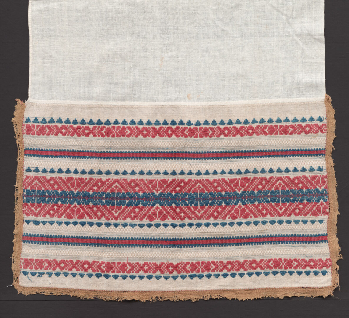 Pôlka je z dvoch druhov tkaniny, jednofarebnú časť tvorí bavlnené plátno, farebné pretkávané konce sú vytkané v konopnom základe. Preberané vzory sú robené hrubšou farebnou bavlnou. Konce odiedzky sú olemované zúbkovanou tkanicou.