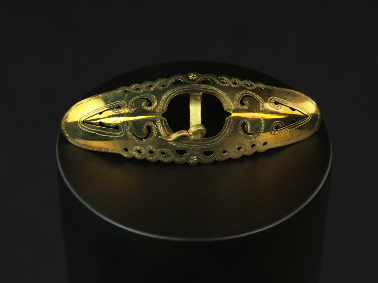 Pracka je z mosadzného plechu, zhotovená tepaním, prerezavaním, razením a rytím.