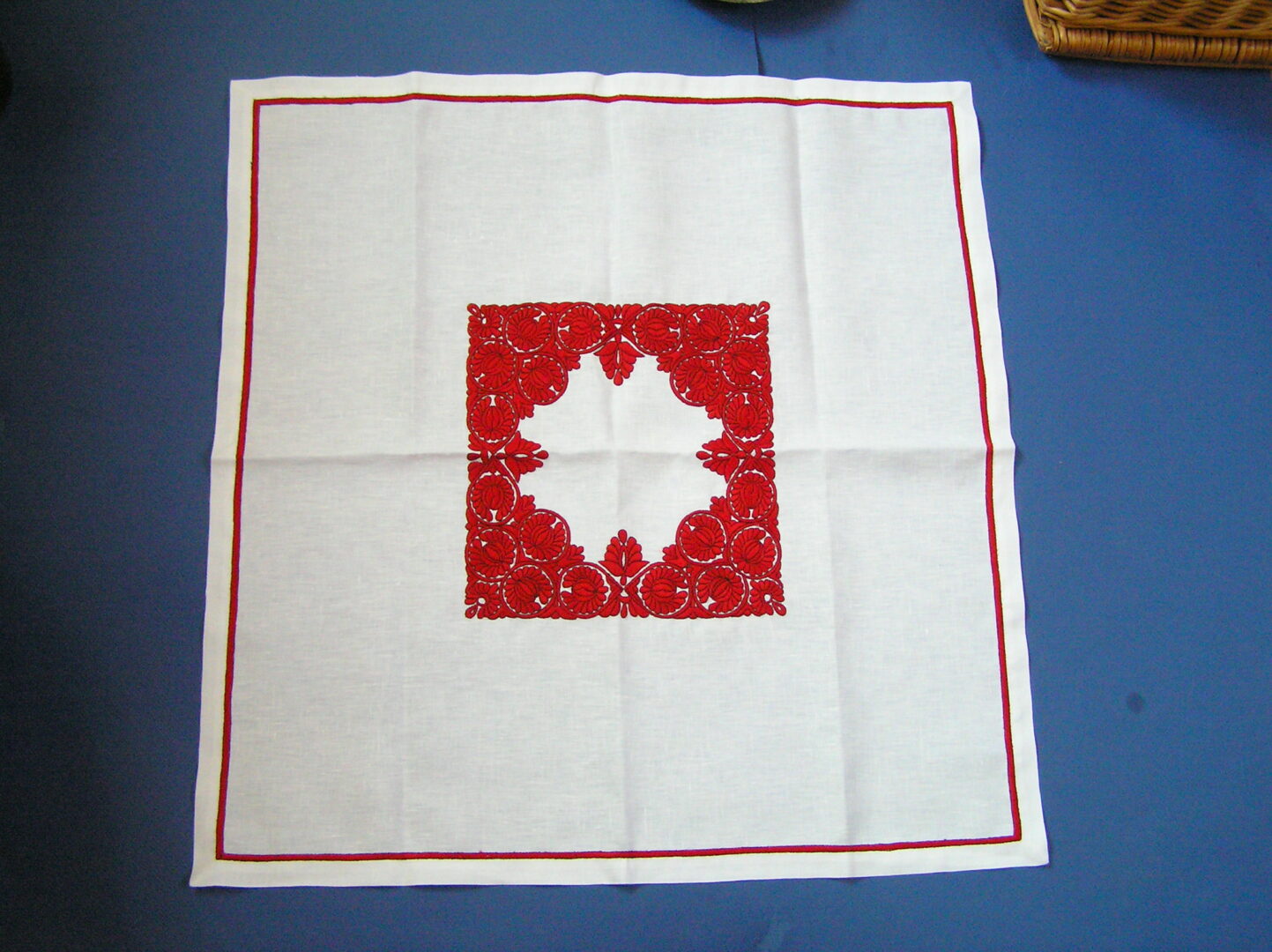 Výšivka zdobiaca výrobok inšpiračne vychádza z ľudového odevu z obce Čataj a Veľký Grôb pri Bratislave. Charakterizuje ju štylizovaný rastlinný ornament a plný plochý vyšívaní steh. Výšivka sa šije podľa vopred predkreslených línií na tenké ľanové plátno jednofarebnou vyšívanou niťou-perlovkou. Zvláštnosťou je kontúrovanie motívov inofarebnou niťou.