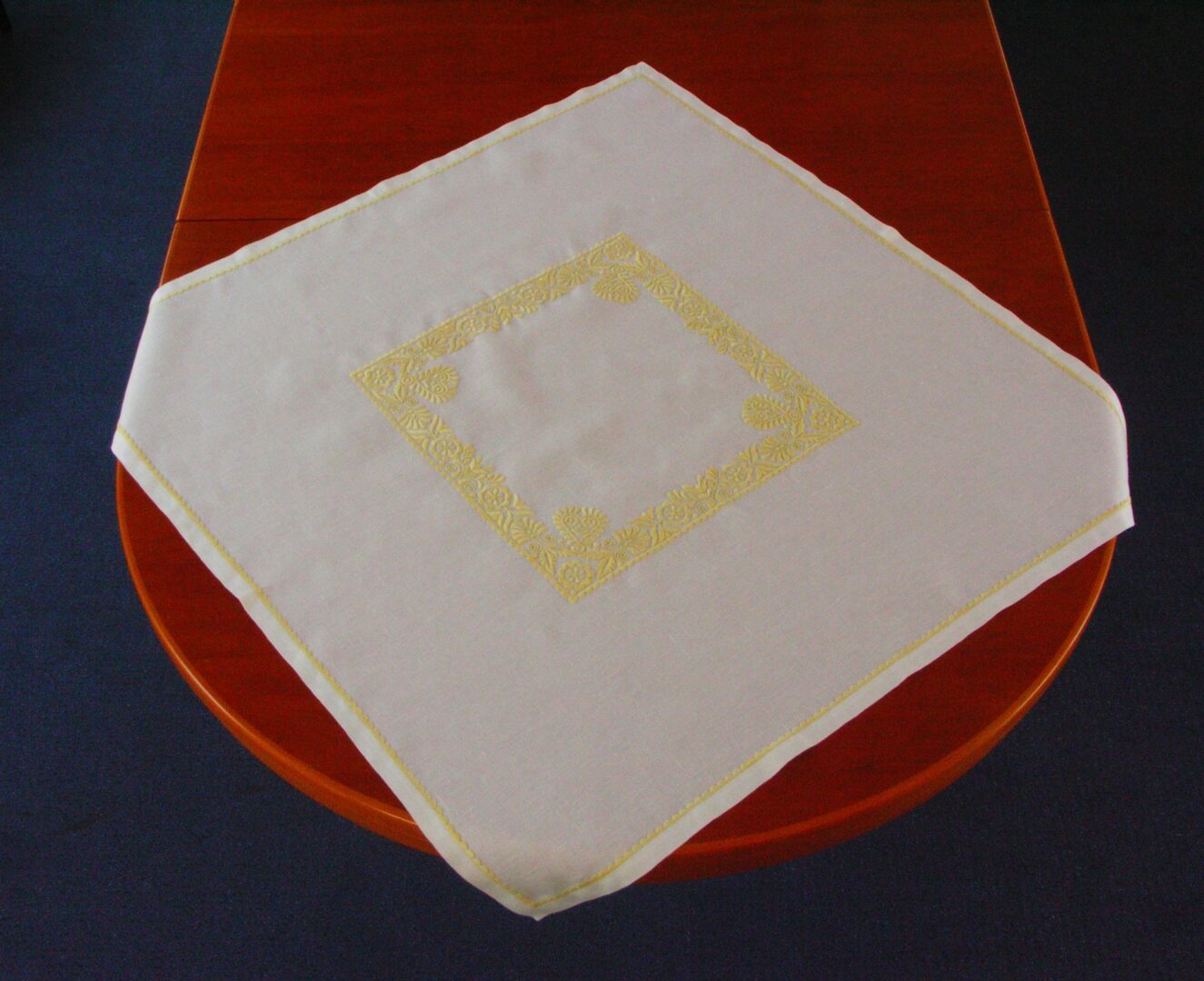 Výšivka zdobiaca výrobok inšpiračne vychádza z ľudového odevu z obce Čataj a Veľký Grob pri Bratislave. Charakterizuje ju štylizovaný rastlinný ornament a plný plochý vyšívací steh. Výšivka sa šije podľa vopred predkreslených línií na tenké ľanové plátno jednofarebnou vyšívacou niťou-perlovkou.
