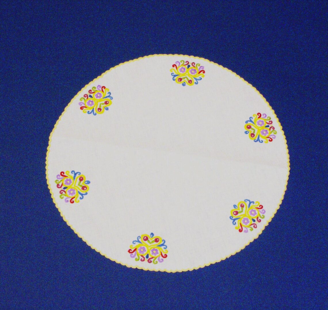 Výšivka zdobiaca výrobok inšpiračne vychádza z ľudového odevu z obce Čataj a Veľký Grob pri Bratislave. Charakterizuje ju štylizovaný rastlinný ornament a plný plochý vyšívaní steh. Výšivka sa šije podľa vopred predkreslených línií na tenké ľanové plátno jednofarebnou vyšívanou niťou-perlovkou.