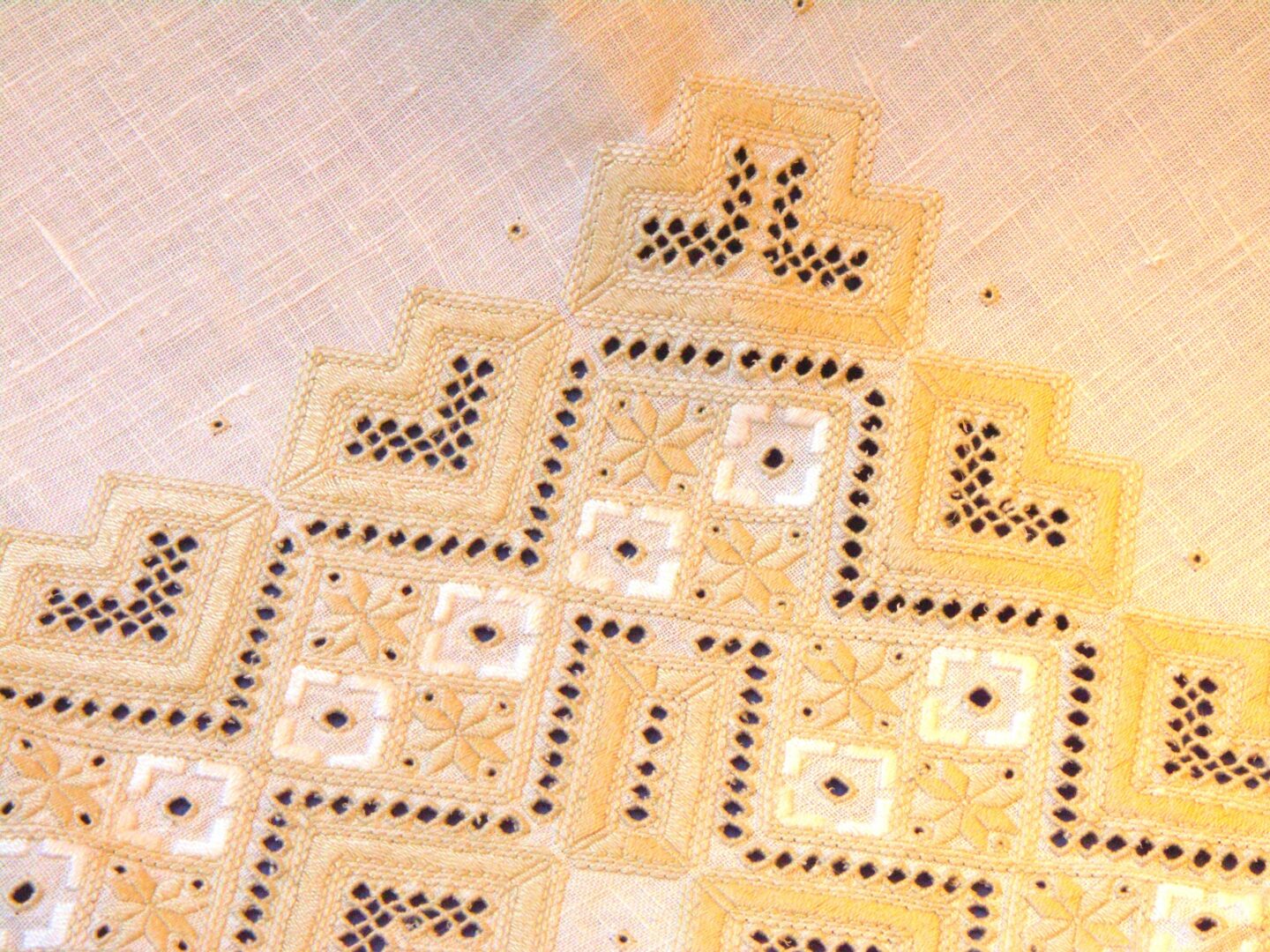 Prikrývka je vyšívaná na továrenskom ľanovom plátne s pravideľnou osnovou farebnými perlovkami. Ornamentiku horehronskej výšivky charakterizujú geometrické motívy, v ktorých dominujú kosoštvorce vyšívané rôznofarebnými priadzami. Uplatňujú sa nové jednoduchšie aj náročnejšie techniky vyšívania. Obyčajný aj vrkôčikový krížik, hladkovanie, výrez a hrachovinka predstavujú základné techniky v horehronskej výšivke. Okrem nich sú zastúpené mnohé ďalšie, napr. krkovička , mešterka retiazky a krivinka.