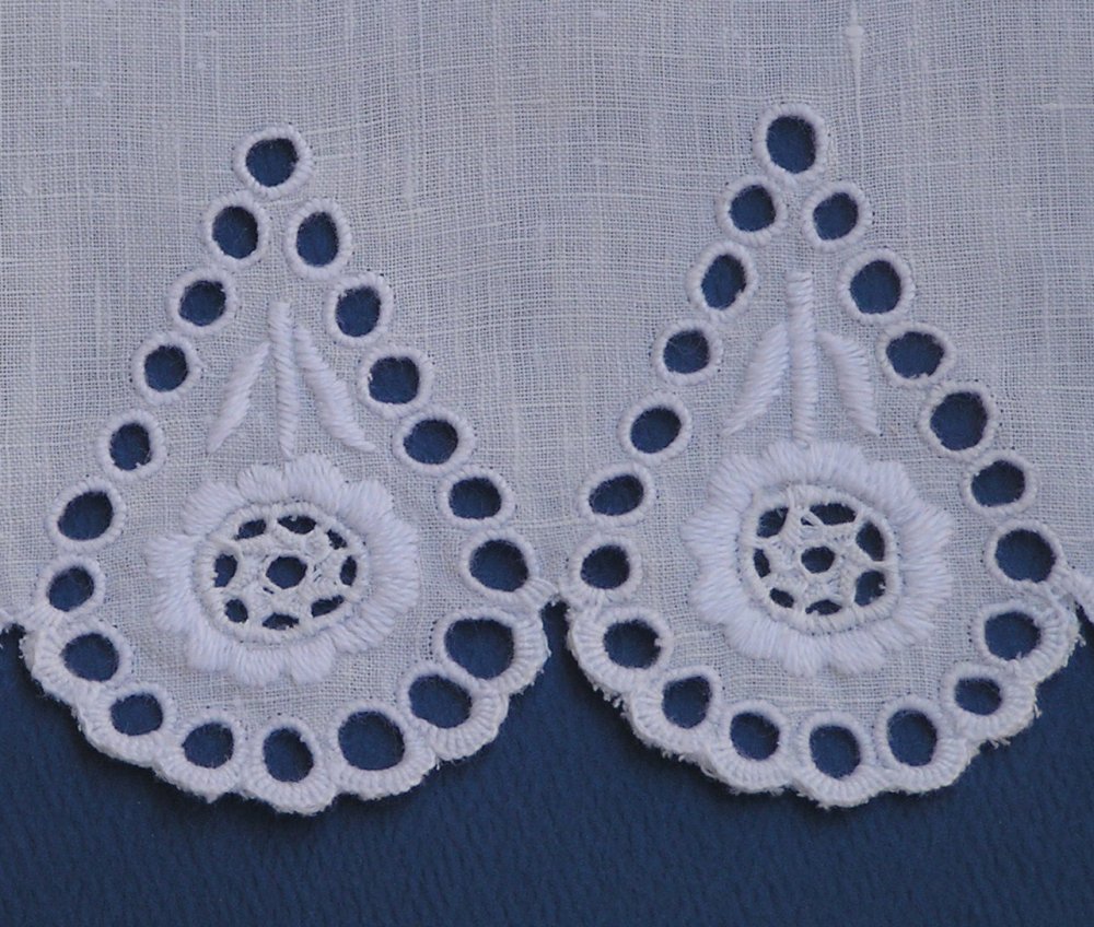 Výšivka má svoj pôvod na západnom Slovensku v okolí Trnavy. Šije sa podľa predkreslenia na vyšívacom ráme. Používajú rôznorodé vyšívacie techniky – najčastejšie sa uplatňuje plná a dierková výšivka v bielom prevedený.