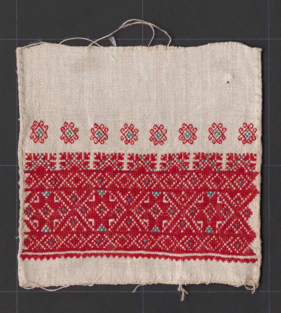 Príramok zo ženských rukávcov je vyšitý na domácom plátne. Výšivka je šitá bavlnenou priadzou. Šitá je podľa počítania nití. Použité stehy: krížik, hladkovanie a zadný steh. Príramok je osobitná časť rukávcov, ku ktorej sa prišíval rukáv, príramky zakrývali ramená.
