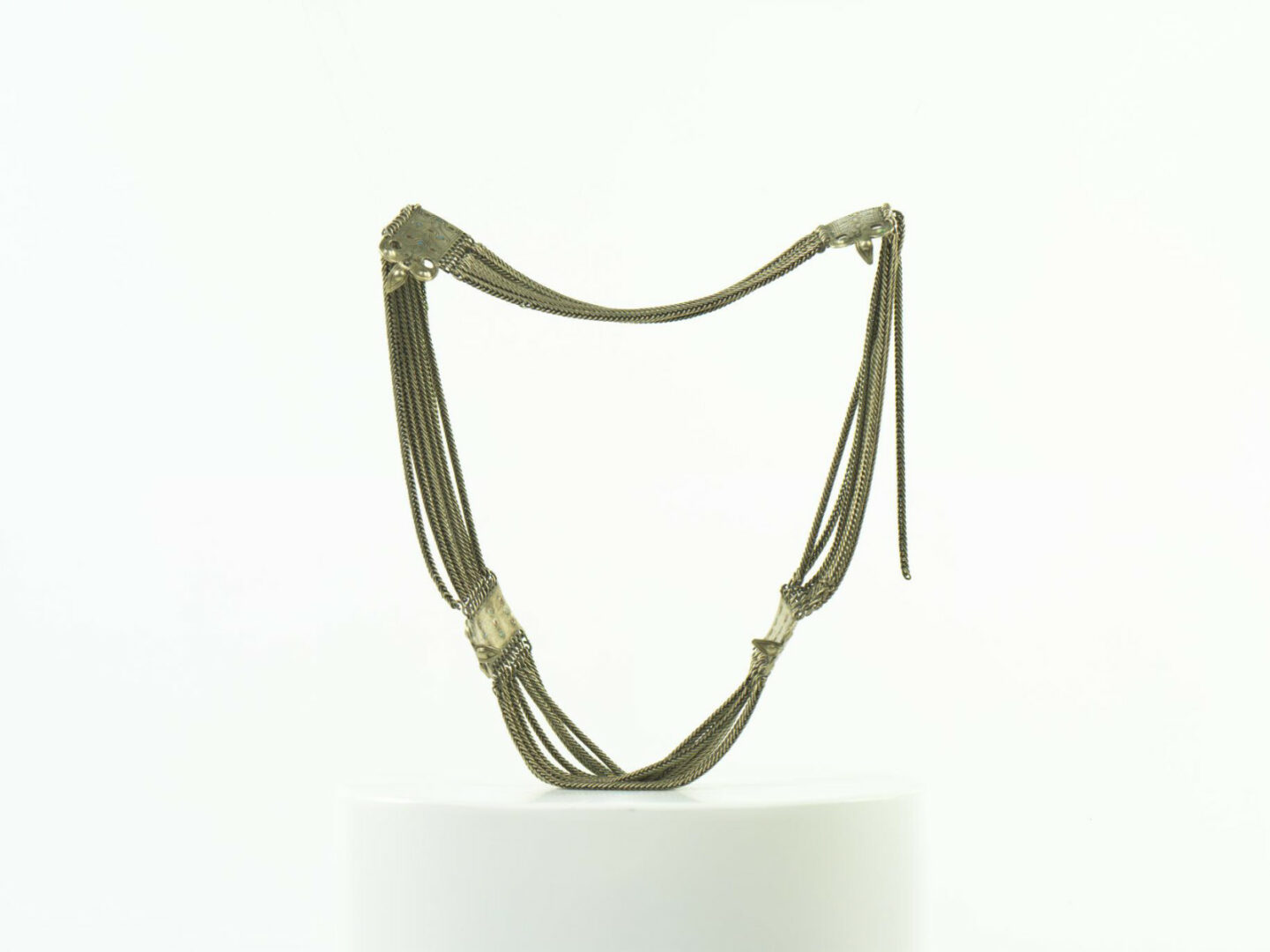 Retiazka ozdobná na mužský detviansky klobúk, tvorí ju štyri polia husto zoradených retiazok, napojených na štyri deliace kovové platničky. Celá táto ozdoba je nasadená zhora na klobúk až po jeho okraj.