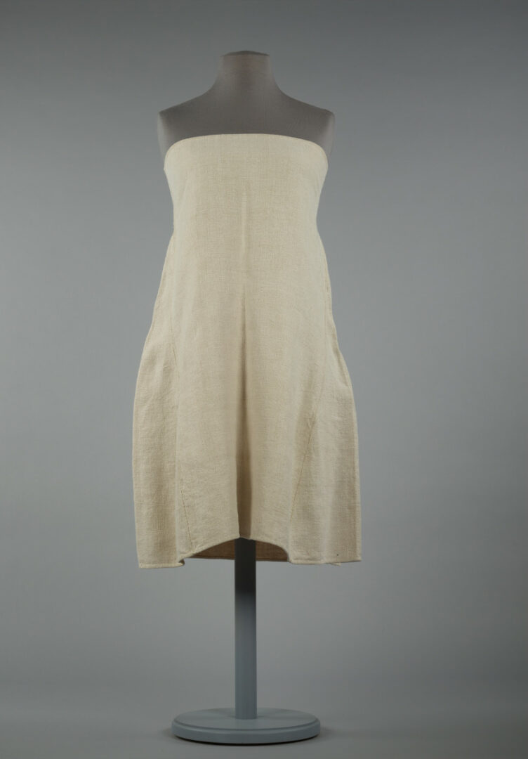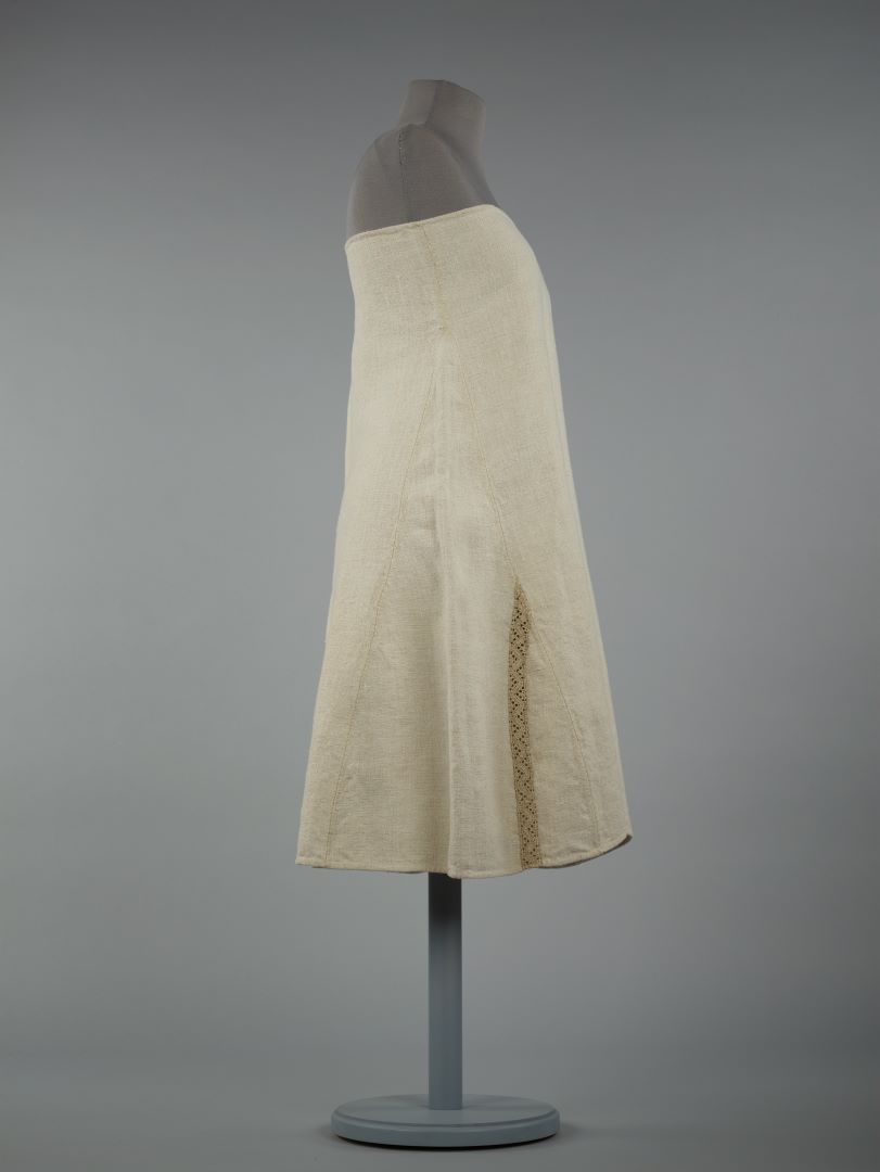 Rubáš je ušitý z domáceho konopného plátna. V klinoch rozširujúcich rubáš je všitá paličkovaná čipka z nebielených konopných nití. Rubáš bol bez ramienok, k telu ho pridŕžal motúz previazaný v páse.