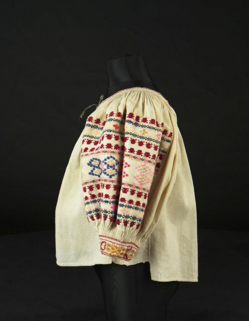Drieková časť rukávcov je z konopného domáceho plátna, rukávy sú z bavlneného. Do rukávov je všitý pás tkaniny s ripsovým farebným vzorom. V bielom ripse je pretkávaný vzor farebnou bavlnou a vlnou. Horná časť rukávcov je nariasená a všitá do úzkeho golierika. Konce rukávov sú tiež nariasené a všité do obalkov (manžiet). Obalky sú vyšité krivou ihlou. Riasenie nad obalkami je spevnené jednoduchou výšivkou. Rázporok rukávcov sa zaväzuje našitou cigánskou tkanicou.