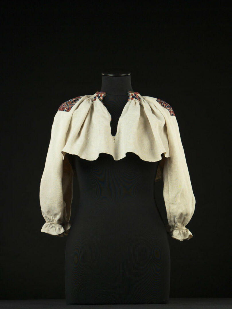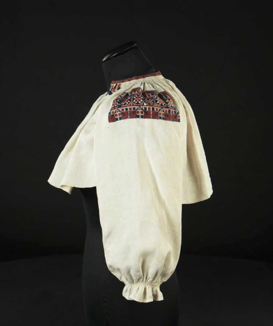 Rukávce sú ušité z konopného domáceho plátna, drieková časťa rukávy z tenšieho, kliny z hrubšieho. Výšivka je šitá krížikmi. Na vyšívanie je použitá tmavomodrá vlnená priadza a bordový nezosúkaný hodváb. Rázporok na prednej časti je obslučkovaný, spodná časť rázporku je zošitá spojovacím švíkom. Rukávy sú v dolnej časti nariasené, riasy sú prešité 2 radmi retiazky. Šitá je konopnou priadzou.