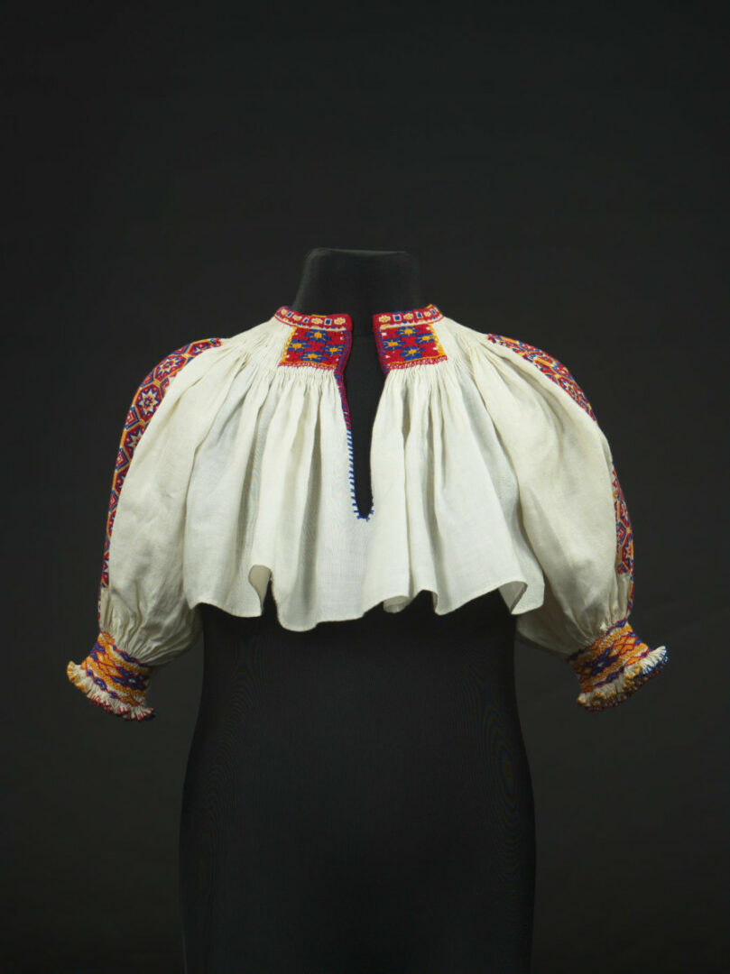 Rukávce z továrenského plátna majú na rukávoch a golieriku krížikovú výšivku. Konce rukávov sú nariasené a cez riasenie je ušitá výšivka. Časť riasenia pod golierikom je tiež spevnená výšivkou. Konce rukávov a rázporok sú obslučkvané