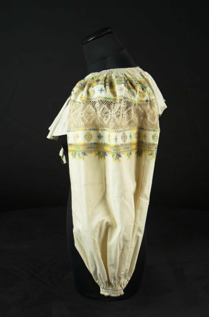 Rukávce sú z domáceho plátna. Na rukávoch majú všitú mnohopárovú paličkovanú čipku. Čipka je upaličkovaná z bavlnenej priadze. Z oboch strán, vedľa čipky, je výšivka podľa počítania nití. Použité stehy: hladkovanie, krížik, ažúrka. Dolná časť rukávov je nariasená, cez riasy je našitý pásik plátna. Úzky golierik je vyšitý krížikmi.