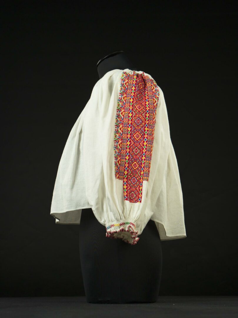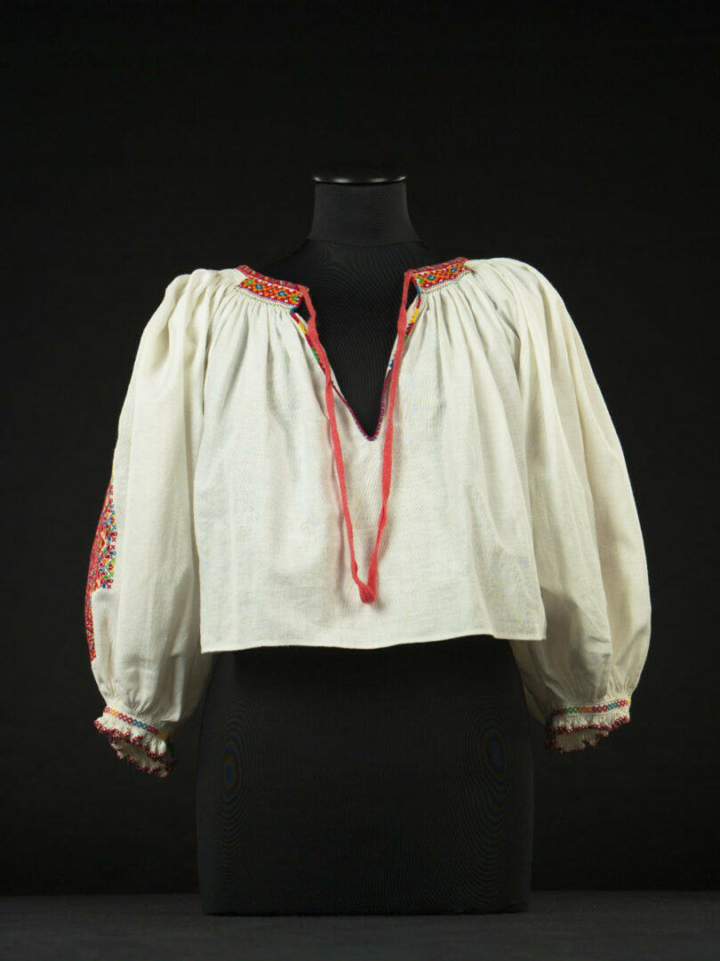 Rukávce sú ušité z továrenského bavlneného plátna. V strede rukávov majú po dĺžke umiestnenú geometrickú výšivku podľa počítania nití. Použité stehy: krížik, zadný steh. Krížikmi je vyšitý aj úzky golierik a pásik krížikovej výšivky je našitý aj cez riasenie na okraji rukávov. Pod golierikom na riasení predného dielu je spevňujúca výšivka.