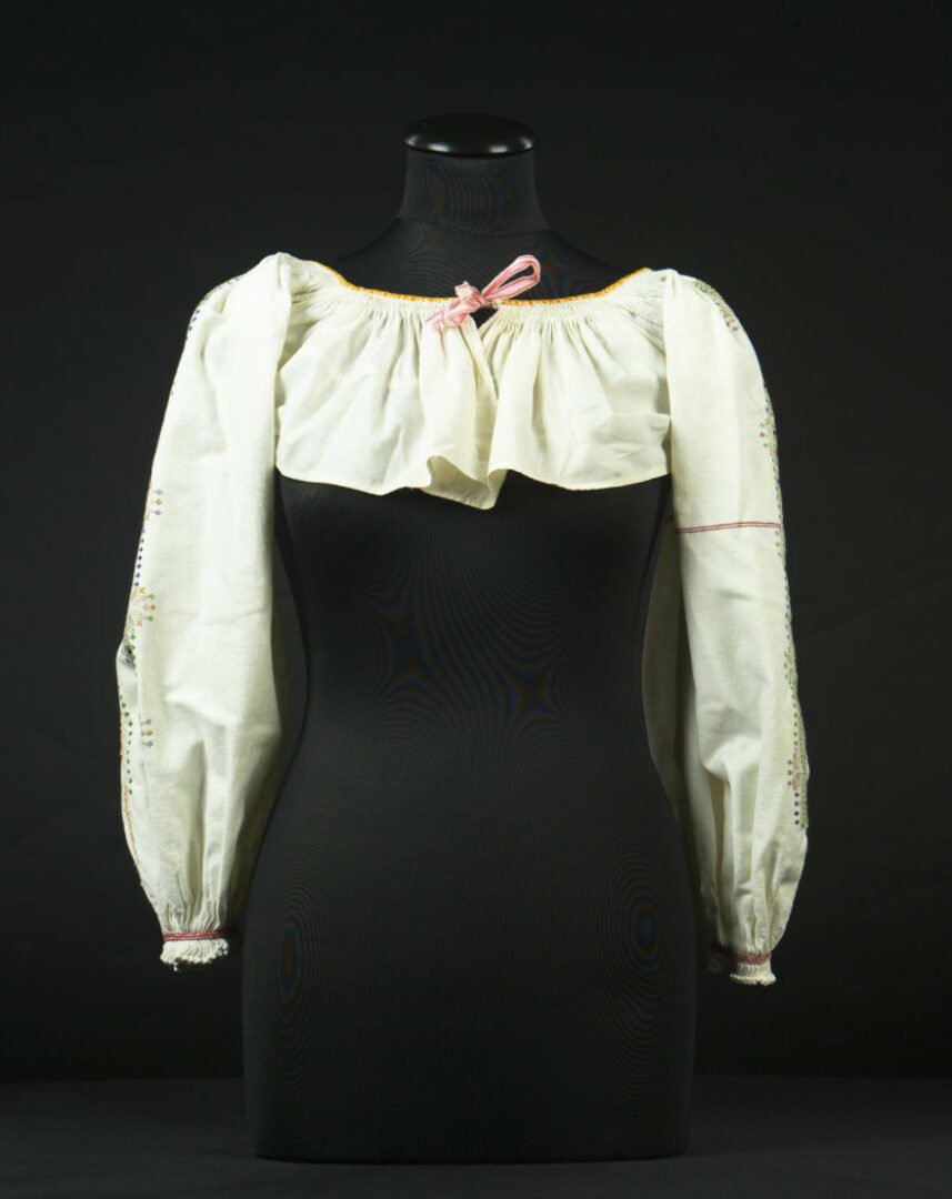 Rukávce sú zhotovené z domáceho plátna, predná a zadná časť z tenšieho kupovaného. Rukávy majú po dĺžke spojené paličkovanou čipkou. Z oboch strán čipky je geometrická výšivka podľa počítania nití. Úzky golierik je vyšitý krížikmi. Konce rukávov sú naskladané, cez sklady je našitá červeno-biela cigánska tkanica.