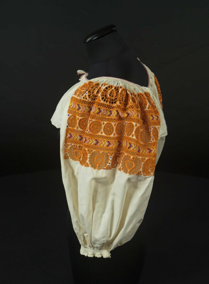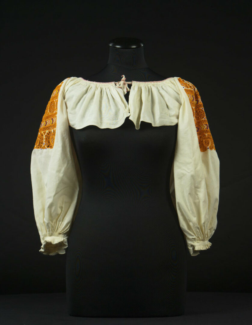Rukávce sú ušité z továrenského plátna. Na rukávoch sú vyšité krivou ihlou výrezom. Vyšívacia priadza je tenšia perlovka. Úzky golierik je vyšitý krížikmi. Konce rukávov sú naskladané, cez sklady je našitý úzky pásik plátna.