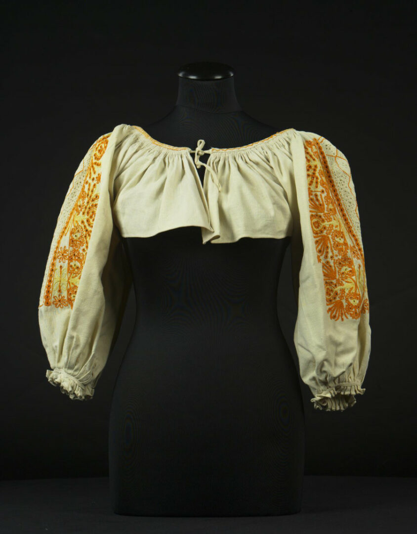 Rukávce sú ušité z domáceho pamokového plátna. Rukávy sú zdobené našitou mnohopárovou paličkovanou čipkou. Čipka je našitá po dĺžke rukáva a z oboch strán ju lemuje výšivka krivou ihlou. Súčasťou vyšitého rastlinného ornamentu sú dierky. Golierik je vyšitý slučkovacím stehom. Konce rukávov sú naskladané, sklady sú spevnené našitým pásikom plátna.