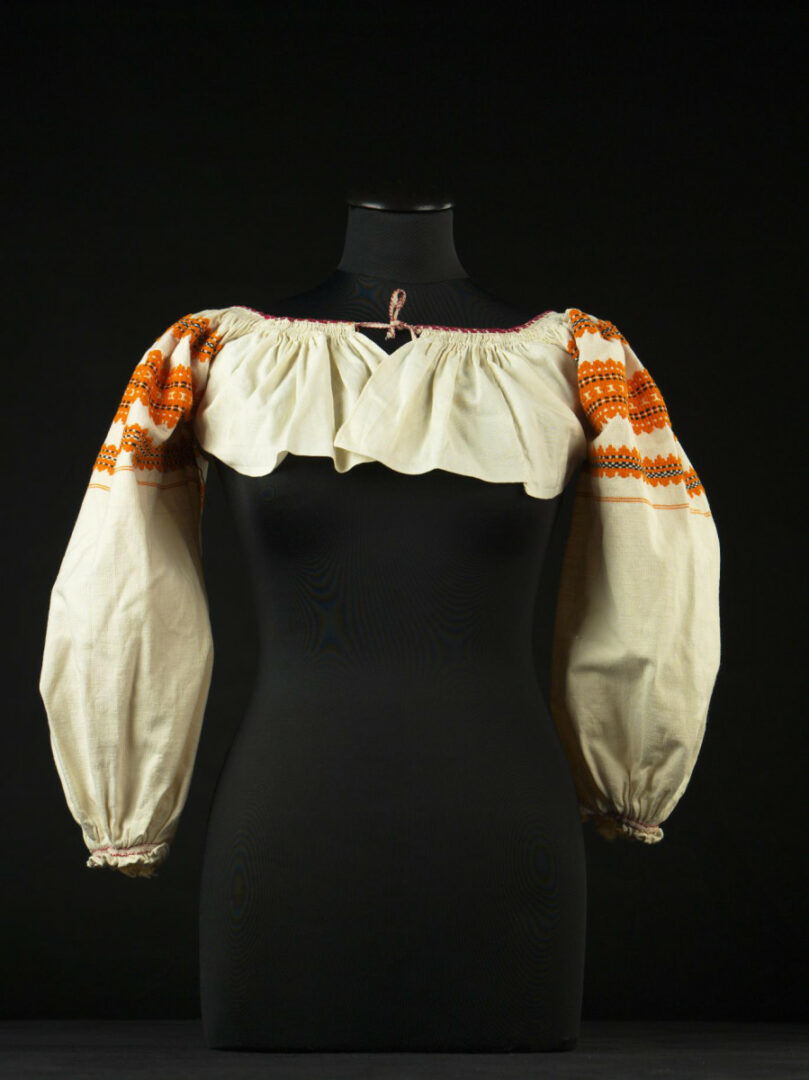 Rukávce sú zhotovené z dvoch druhov plátna, rukávy z domáceho pamokového, drieková časť z továrenského. Rukávy sú v hornej časti ozdobené farebným vytkávaním, ktoré je komponované do troch pásov. Úzky golierik je vyšitý dvomi radmi krížikov. Konce rukávov sú naskladané a sklady sú spevnené našitou cigánskou tkanicou.