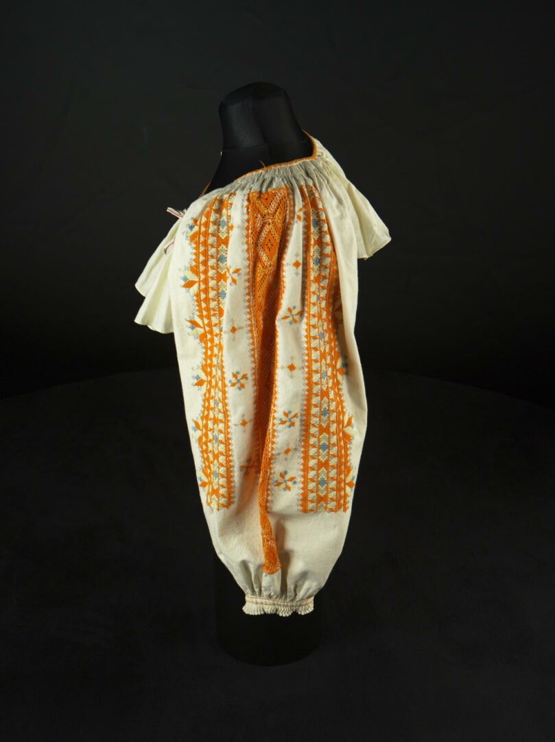 Rukávy rukávcov sú ozdobené po dĺžke všitou paličkovanou mnohopárovou čipkou. Z oboch strán čipky je geometrická výšivka šitá podľa počítania nití. Použité stehy: hrachovinka, hladkovanie, krížik. Konce rukávov sú naskladané, cez sklady je našitý úzky pás plátna. Úzučky golierik je vyšitý dvoma radmi krížikov.