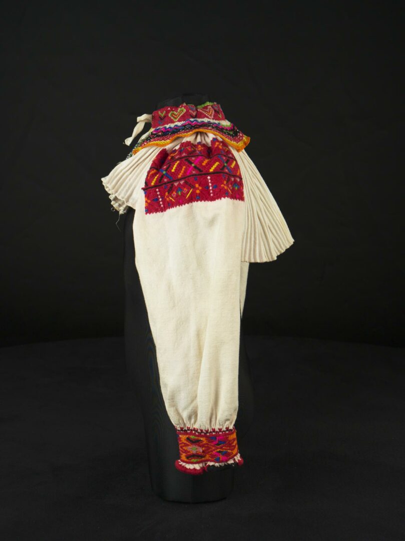 Rukávce sú ušité z hrubšieho domáceho plátna. Golierik je vyšitý krížikmi, rukávy úsporným plochým stehom, na koncoch rukávov je výšivka cez riasenie. Výšivka je šitá hrubšou bavlnenou a vlnenou priadzou. Sieťované okružie prišité ku golieriku je tiež vyšité týmito pestrými priadzami. Stan rukávcov je riasený, rukávce sú ušité ručne.