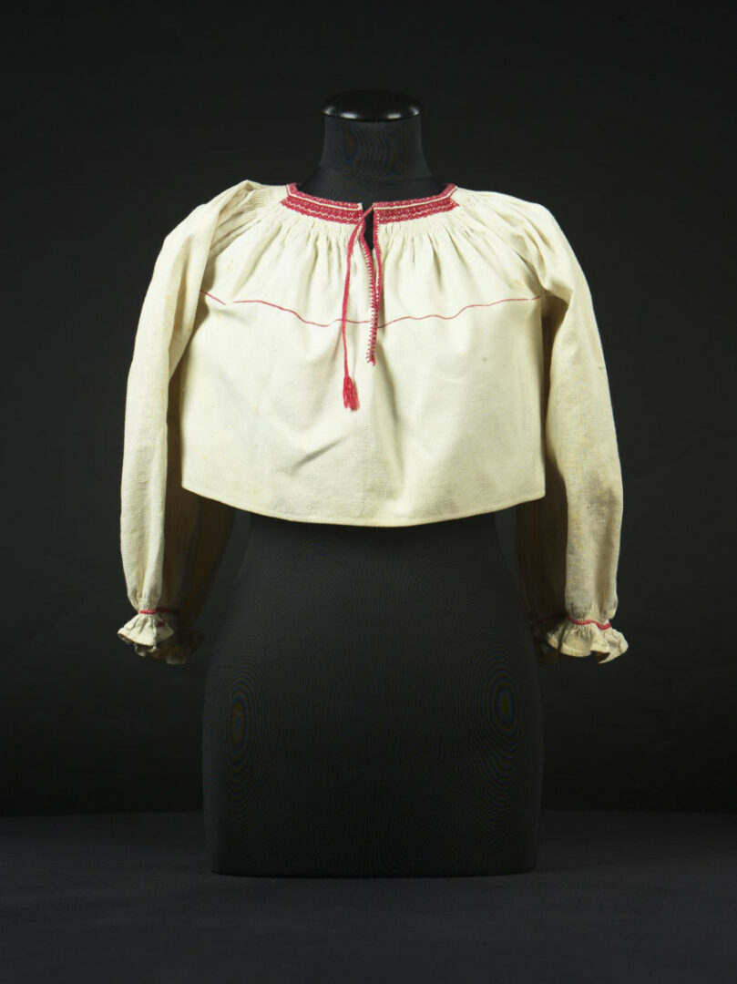 Rukávce sú ušité z domáceho plátna. Rukávy sú po dĺžke zošité za pomoci všitej mnohopárovej paličkovanej čipky. Pozdĺž čipky je z oboch strán ušitá hrachovinka.Čipka je z hrubšej ľanovej priadze.Konce rukávov sú nad dolným okrajom narisené, riasy sú zachytené krokvičkou.Golierik je vyšitý krížikmi, riasenie na prednej časti pod golierikom je spevnené výšivkou. Ku golieriku sú pripevnené šnúrky na uväzovanie. Pletené sú na piatich prstoch.