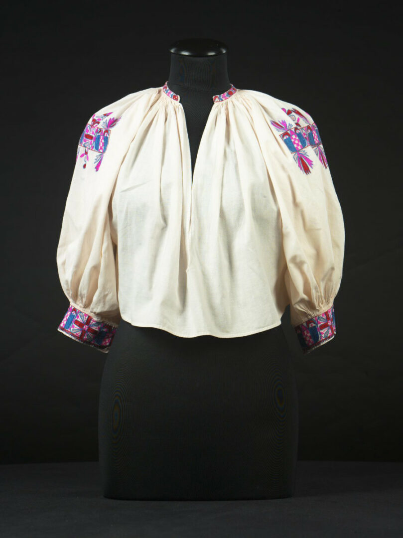 Rukávce sú ušité z továrenského plátna. Na hornej časti rukávov, na obalkoch a golieriku majú výšivku. Predkreslené motívy sú šité hustou krokvičku, stonkovým a plným plochým stehom.