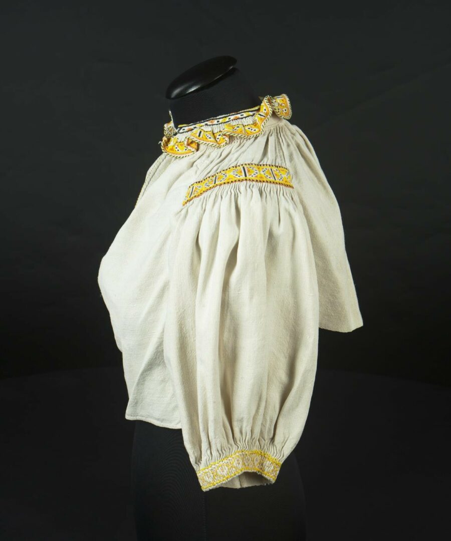 Rukávce z prelomu 19.a 20.storočia sú ušité z domáceho miešaného plátna, kliny sú z hrubšieho konopného. Golierik, okružie a plece sú ozdobené výšivkou. Geometrický vzor je vyšitý hladkovaním, krivinkou a slučkovacím stehom. Konce rukávov sú nariasené a spevnené výšivkou. Farebnosť výšivky určuje rukávce starším ženám a mladším v smútku.