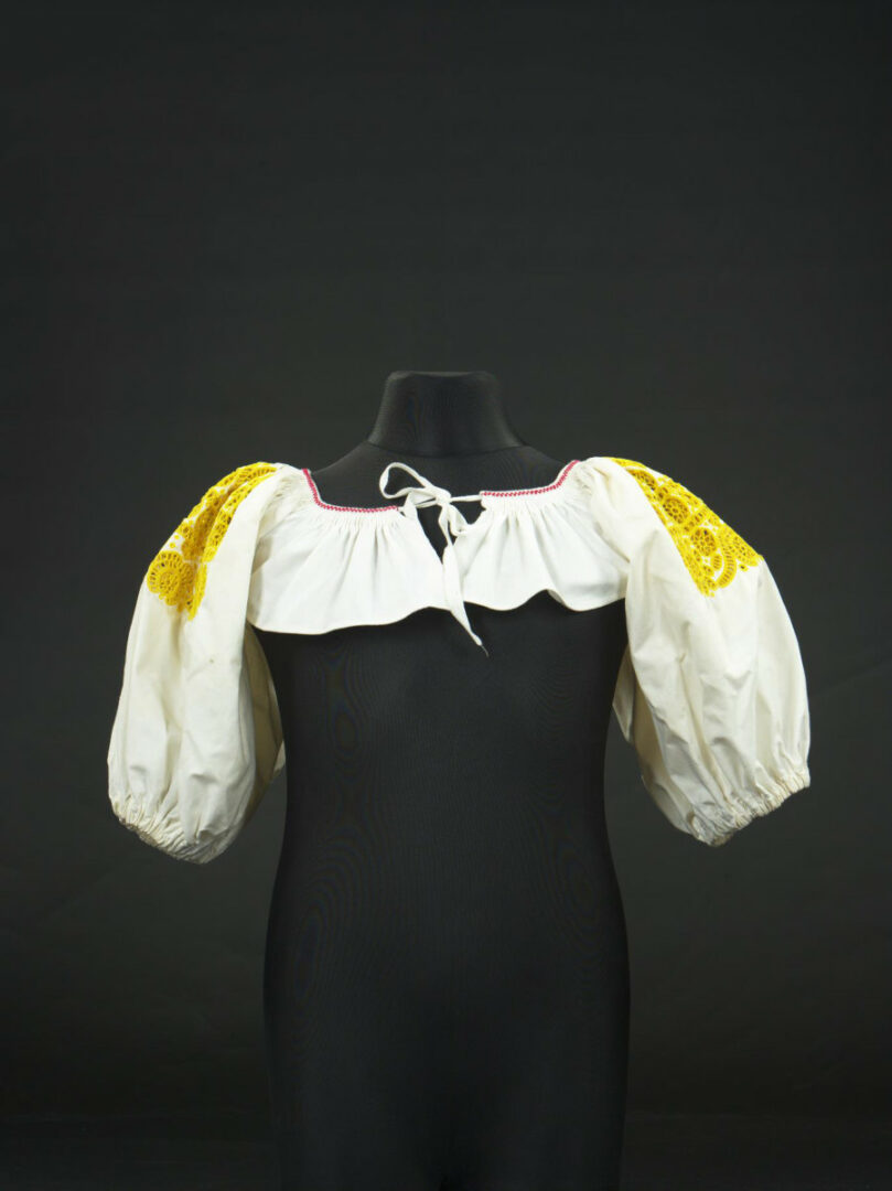 Rukávce sú ušité z továrenského plátna. Na hornej časti rukávov je výšivka krivou ihlou. Motívy kvetov, tulipánov, kruhov sú vyšité na výrez. Na úzkom golieriku sú vyšité dva rady krížikov. Na koncoch rukávov je ušitý prehyb, v ktorom je navlečená guma.