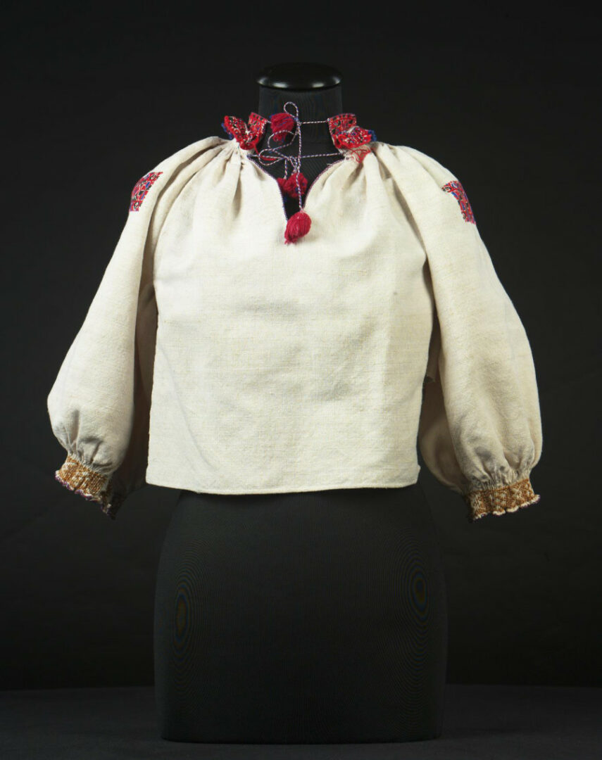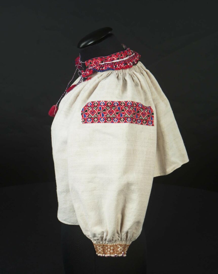 Rukávce sú ušité z miešaného domáceho plátna (konope a bavlna). Na hornej časti rukávov, na golieriku a úzkom okruží je výšitý geometrický ornament. Použité stehy: hladkovanie, krížik, krivinka, slučkovací. Konce rukávov sú nariasené, riasenie je spevnené výšivkou. Golieik sa zaväzoval šnúrkami stočenými z farebných priadzí a ukončených strapčekmi.