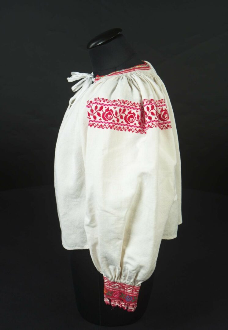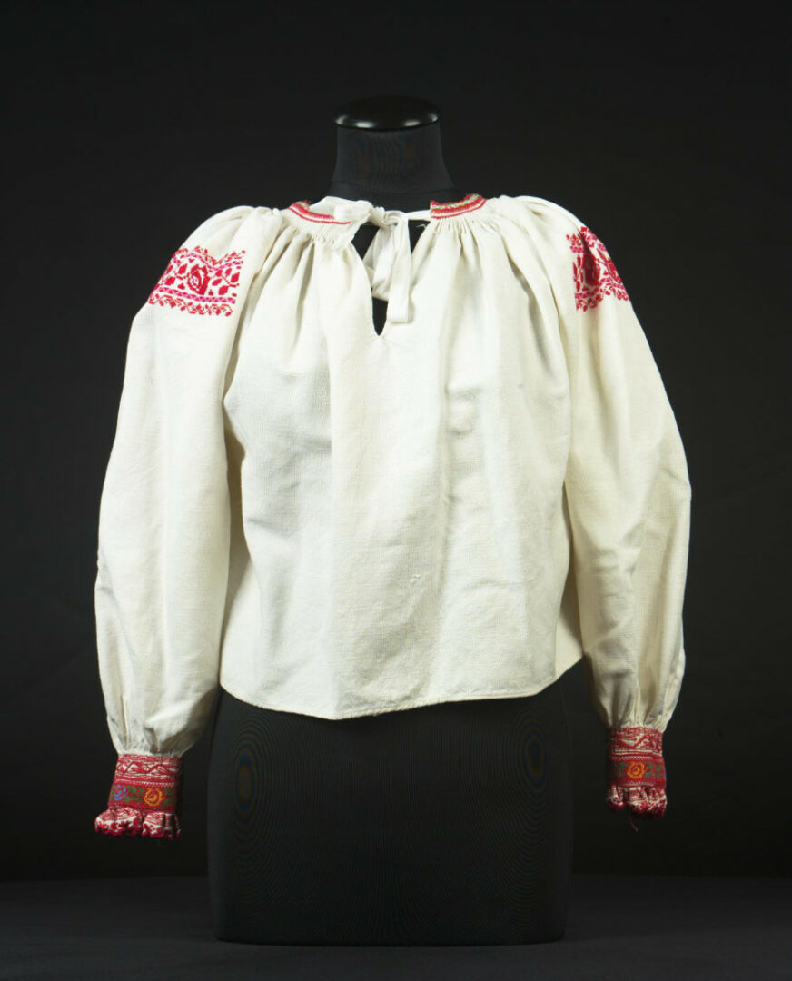 Pracovné rukávce sú zhotovené z domáceho ľanového plátna. Na rukávoch a golieriku je výšivka podľa počítania nití. Na hornej časti rukávov je rastlinný ornament vyšitý hladkovaním. Golierik je vyšitý krížikmi. Konce rukávov sú naskladané a cez sklady je našitý pásik plátna vyšitý krížikovou výšivkou. Z oboch strán pásika sú sklady preštepované strojom. Konce rukávov lemujú našité textilné zúbky.