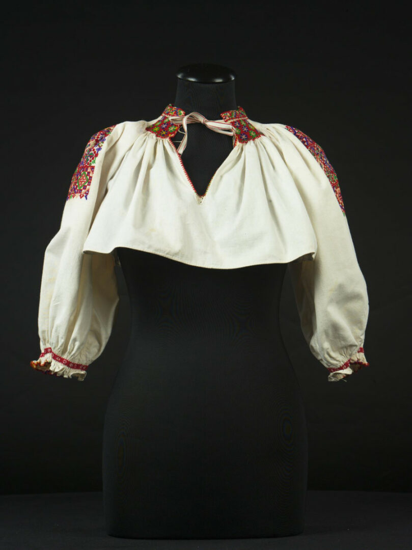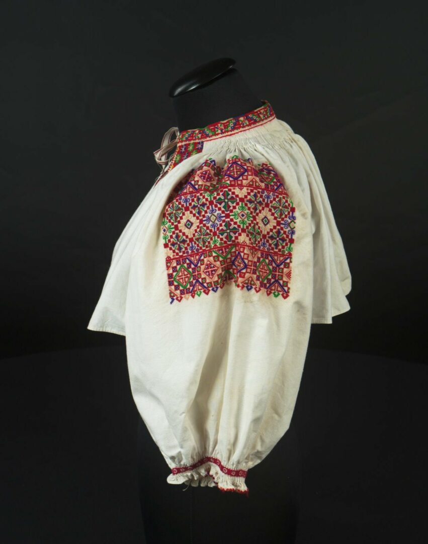Rukávce z továrenského plátna sú vyšité vlnenou priadzou. Použité stehy: krížik obyčajný, vrkôčikový, zadný a slučkovací. Riasenie na prednej časti pod golierikom je spevnené výšivkou. Konce rukávov sú nariasené, cez riasenie je našitá továrenska tkanica. Rukávce sú ušité ručne.
