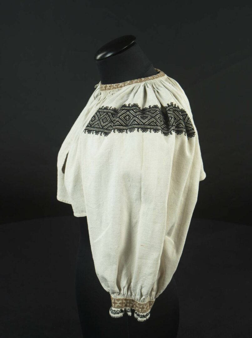 Rukávce sú ušité z domáceho plátna. Vyšité sú čiernou bavlnkou podľa počítania nití. Použité stehy: krížik, krivinka. Rukávce majú golierik a časť výšivky na rukávoch hnedej farby. Pôvodne čierna výšivka po vypratí vybledla. Vyšívačka použila rôzne čierne nite, tie menej kvalitné pustili farbu.