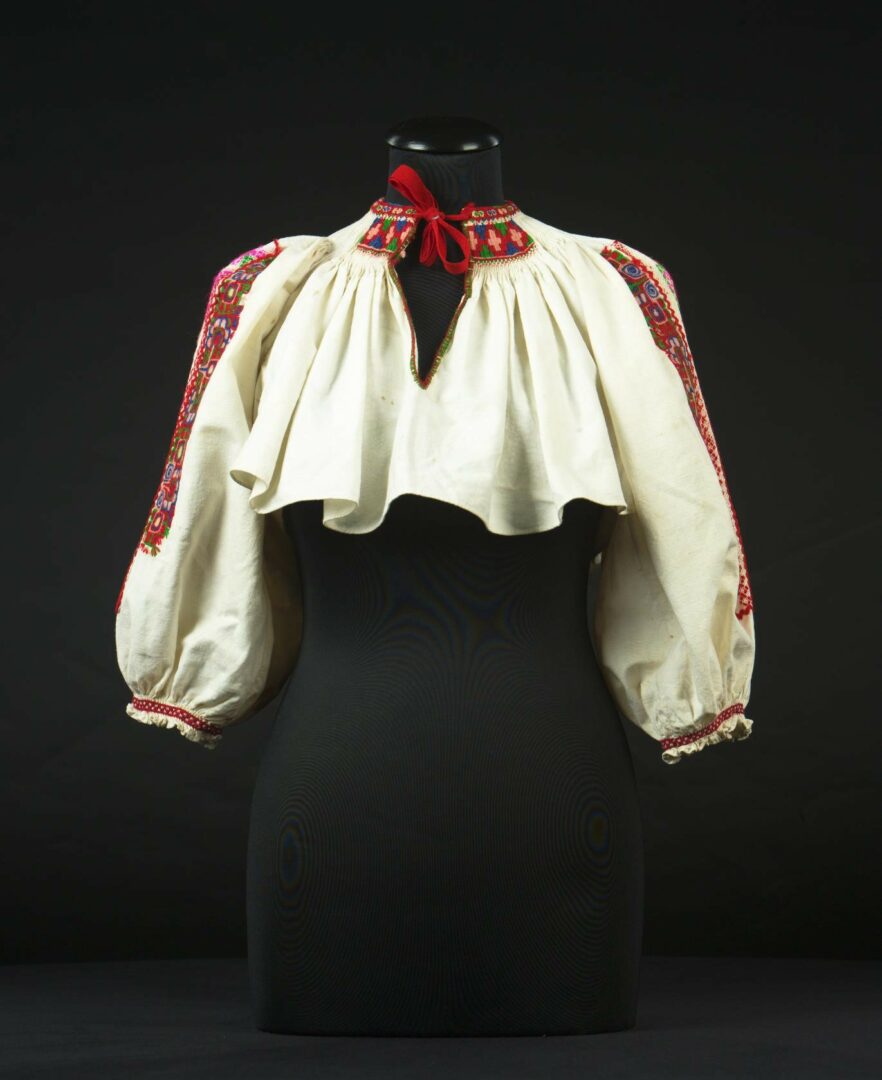 Rukávce sú z továrenského plátna. Na golieriku a rukávoch majú výšivku. Na golieriku krížikovú. Na rukávoch je po dĺžke našitý pás hrubšieho tylu s preťahovanou výšivkou, z oboch strán ho lemuje pás výšivky šitý stonkovým a plným úsporným stehom. Celé rukávce sú vyšité farebnou vlnenou priadzou. Pás tylu lemuje našitá vlnená hadovka. Pod golierikom na prednej časti je riasenie spevnené slučkovacím stehom. Rázporok je tiež obšitý slučkovacím stehom. Konce rukávov sú nariasené, cez riasenie je našitá továrenska tkanica.