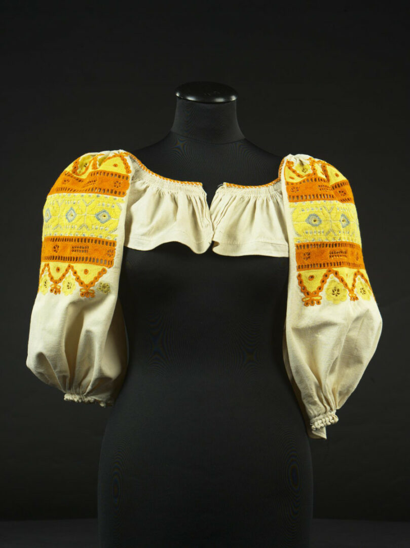 Rukávce sú z domáceho plátna. Na rukávoch majú výšivku krivou ihlou. Výšivka je šitá hrubšou bavlnenou priadzou. Horná časť je nariasená a všitá do golierika, vyšitého krížikmi. Konce rukávov sú naskladané, sklady sú na jednom rukáve spevnené našitím pásika plátna. Z druhého je pásik odpáraný. V takýchto rukávcoch sa koncom 19. storočia dievčatá vydávali.