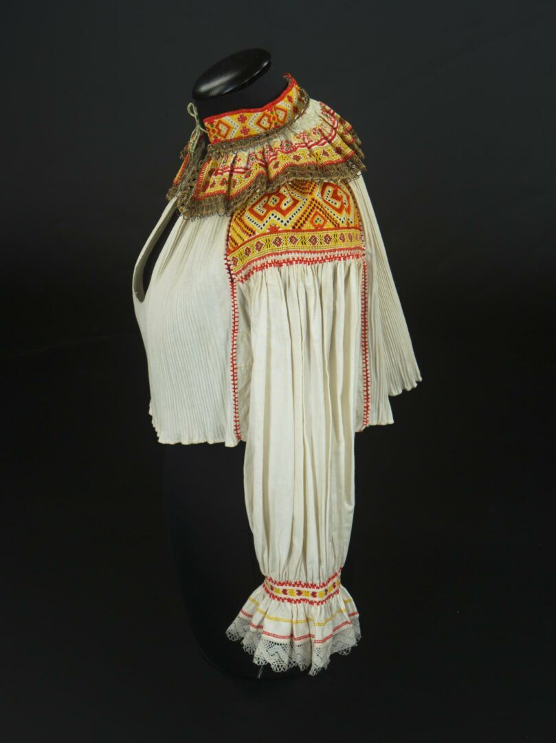 Rukávce sú ušité z továrenského plátna. Na golieriku, okruží a príramkoch je výšivka podľa počítania nití. Použité stehy: formovanie, hladkovanie, výrez, ažúrka, krížik. Výšivka je robená perlovkou a nesúkaným hodvábom. Jednotlivé časti sú zošité spojovacím švíkom. Okolo golierika a okružia je našitý kovový ozdobný prámik, na koncoch rukávov biela továrenska čipka. Rukávy sú  od dolného okraja zriasené, riasenie je spevnené výšivkou.