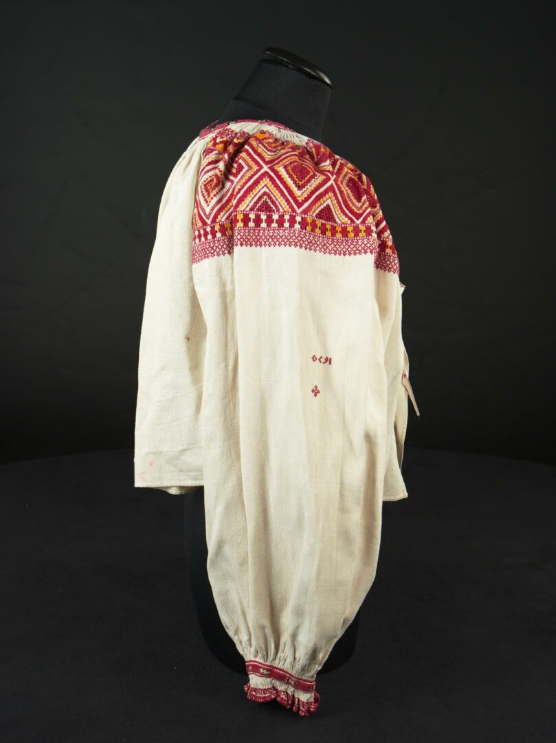 Rukávce sú z ľanového domáceho plátna. Na hornej časti rukávov, na golieriku a na koncoch rukávov majú výšivku podľa počítania nití. Použité stehy: formovanie, hladkovanie, výrez, hrachovinka, krížik, spevňujúce stehy cez riasenie. Konce rukávov sú obslučkované.