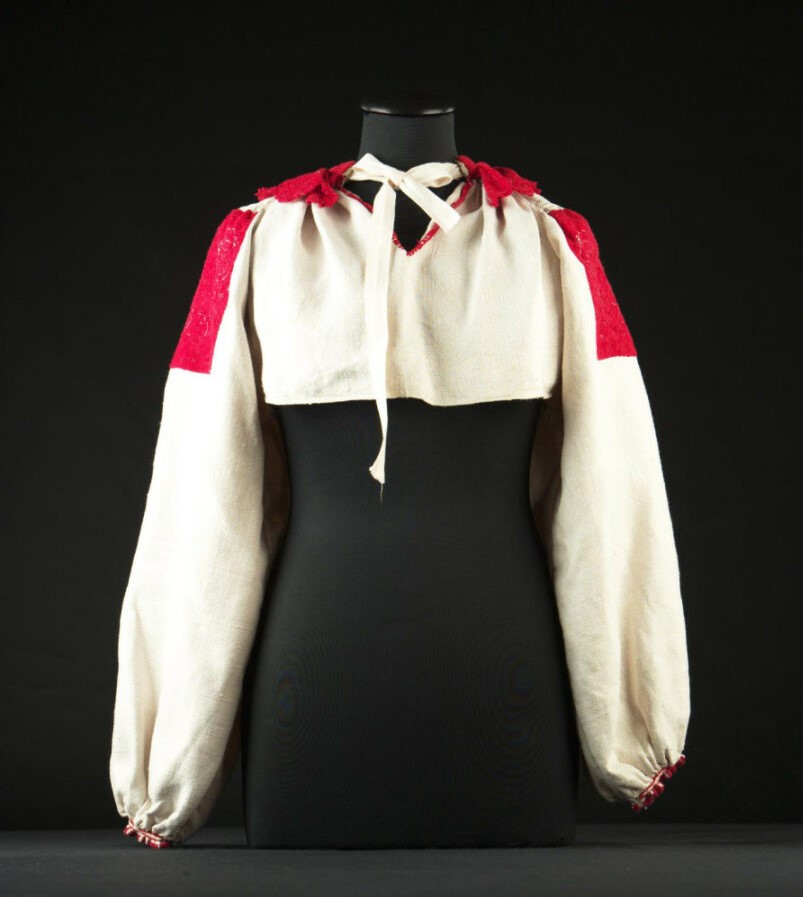 Rukávce sú ušité z domáceho ľanového kepru. Na hornej časti rukávov a na golieriku je umiestnená výšivka. Na rukávoch je predkreslená výšivka šitá úsporným plochým stehom, na golieriku je výšivka podľa počítania nití, krížiková. Ku golieriku je prišité háčkované okružie. Výšivka a háčkovaná čipka sú z červenej bavlnenej priadze. Konce rukávov a rázporok sú obslučkované.