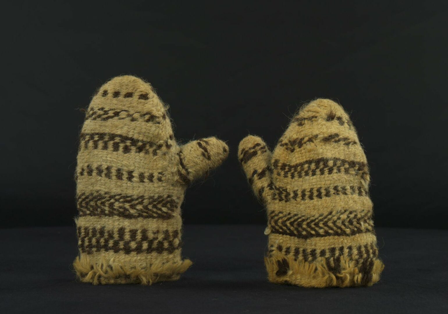 Rukávice sú tkané na forme zápästkovou technikou. Vyrobené sú z ručne pradenej ovčej vlny, bielej a tmavej.