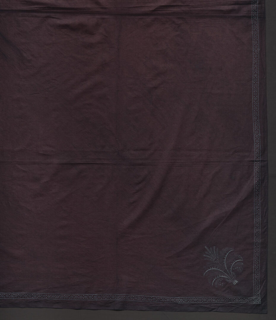 Je zafarbená v indigu. Dookola má natlačenú úzku bordúru, v každom rohu je kvetinový motív. Na lícnej a rubovej strane je natlačený ten istý vzor.