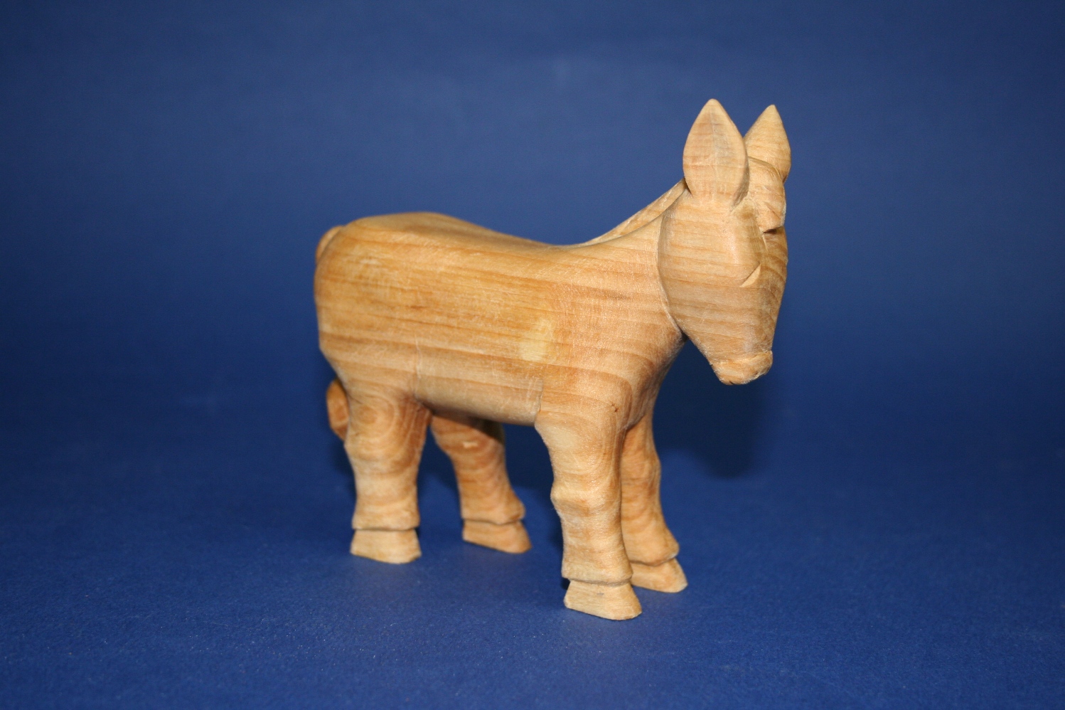 Drevený osol k betlehemu je ručne vyrezávaný v prírodnom prevedení. Povrch je ošetrený jemným navoskovaním.