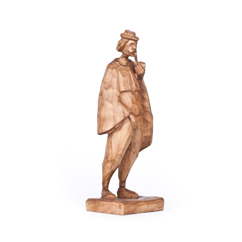 Socha muža s fajkou je ručne vyrezávaná v prírodnom prevedení alebo morená.