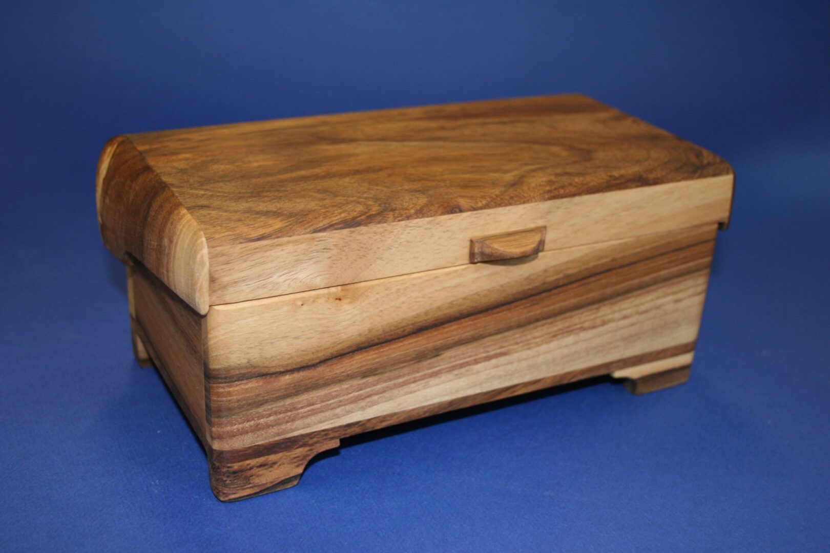 Drevená šperkovnica na nôžkach s vrchnákom môže byť vyhotovená z rôznych drevín. Je do hladka opracovaná a povrch je ošetrený jemnou vrstvou ľanového oleja.