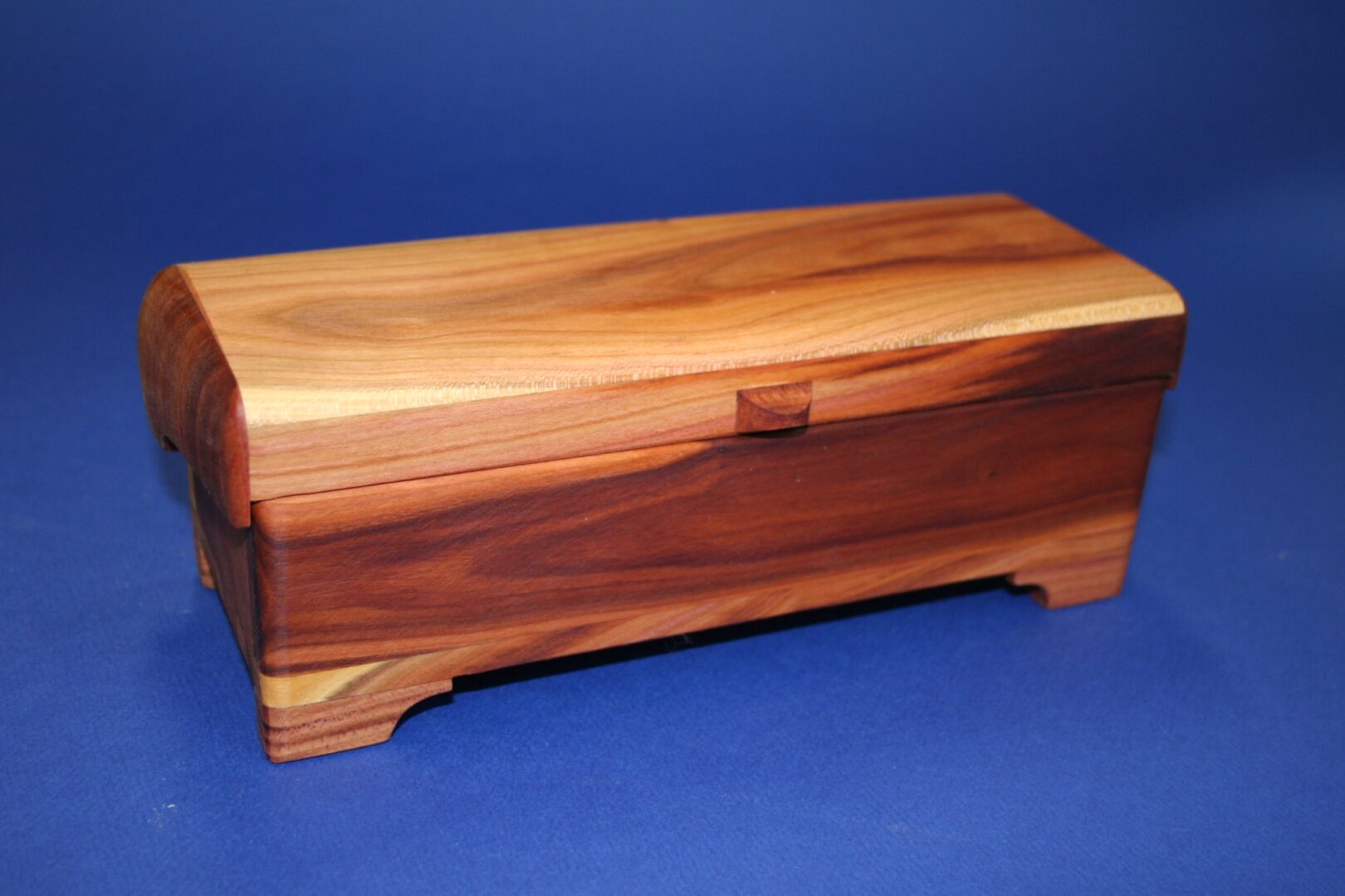 Drevená šperkovnica na nôžkach s vrchnákom môže byť vyhotovená z rôznych drevín. Je do hladka opracovaná a povrch je ošetrený jemnou vrstvou ľanového oleja.
