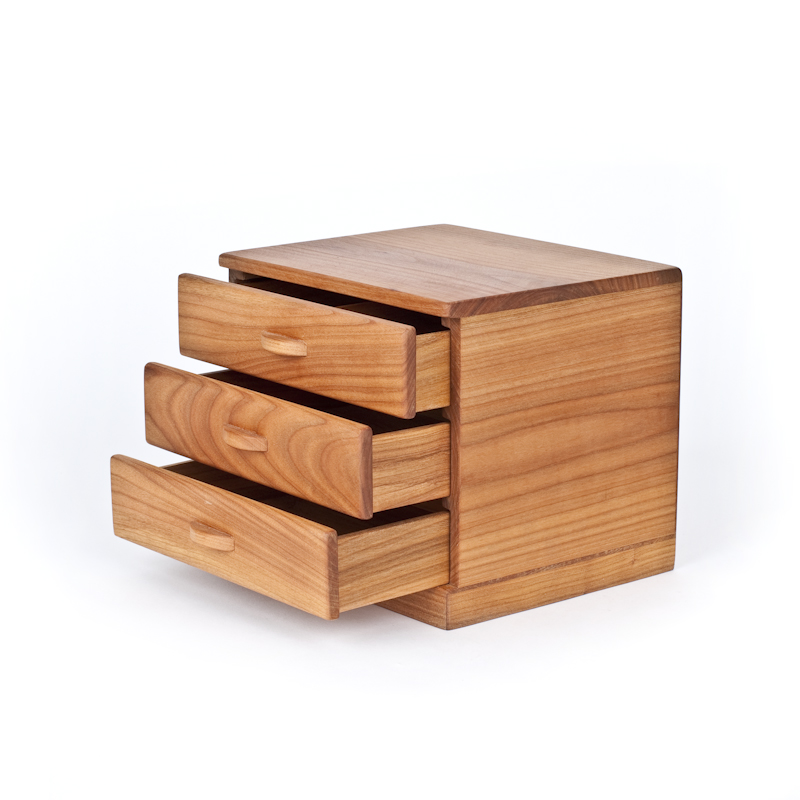 Drevená šperkovnica s 3 zásuvkami v prírodnom prevedení väčšia.