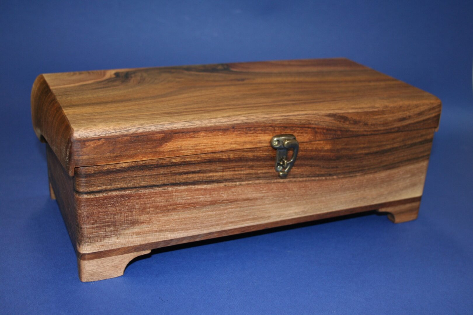 Drevená šperkovnica na nôžkach s vrchnákom na kovový uzáver, môže byť vyhotovená z rôznych drevín. Je do hladka opracovaná a povrch je ošetrený jemnou vrstvou ľanového oleja.