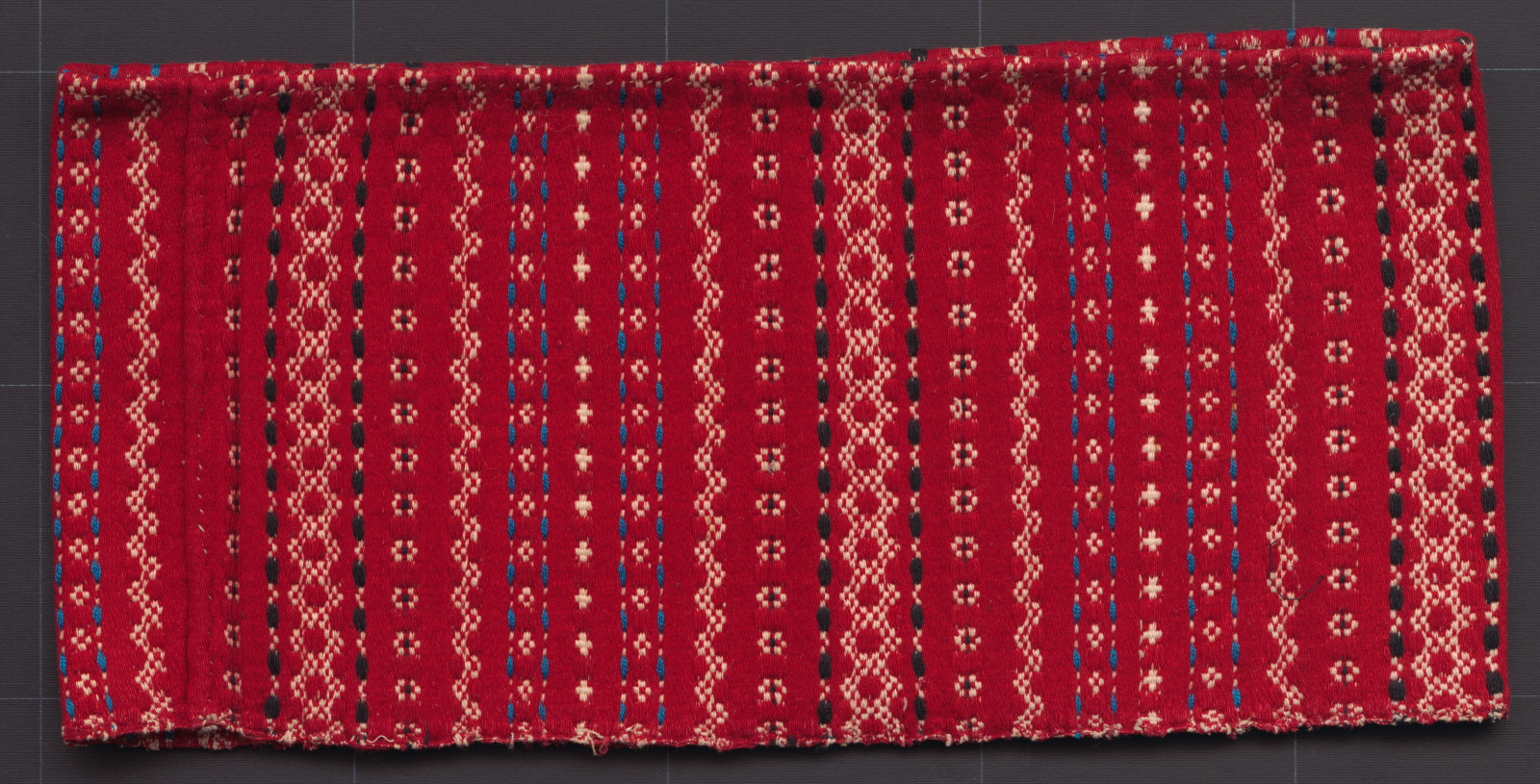 Stanka je utkaná z bavlnenej priadze. Použitá je keprová väzba, vzor je vytvorený preberaním. Stanku tvorí polovica celej šírky tkaniny, jeden okraj je pevný, druhý je ručne obrúbený..