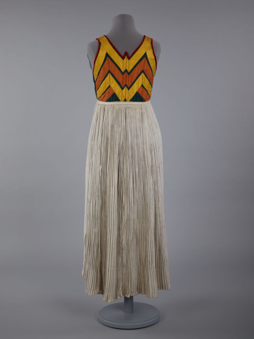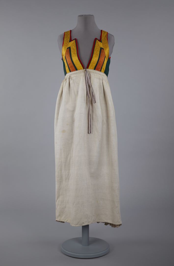 Sukňa je ušitá z domáceho kepru. Poly sú zošité ručne, dolný okraj je ručne obrúbený. Okrem prednej poly je sukňa naskladaná do záhybov a všitá do obalka. Živôtik je z bavlneného flanelu, podšitý je polokonopným domácim plátnom. Okraje sú olemované tiež bavlneným flanelom. Na živôtiku je našitá stuha z kovovej priadze a textilno – flitrová ozdoba. Živôtik je ušitý strojom. So sukňou je zošitý ručne, tak aby sa sukňa dala jednoducho odpárať a vyprať.