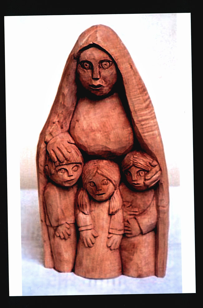 Súsošie babka s deťmi je ručne vyrezávané a morené.