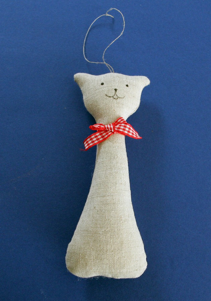 Textilné zvieratko – mačka je vyrobená zo 100% bavlnenej látky, vyplnená dutým vláknom.