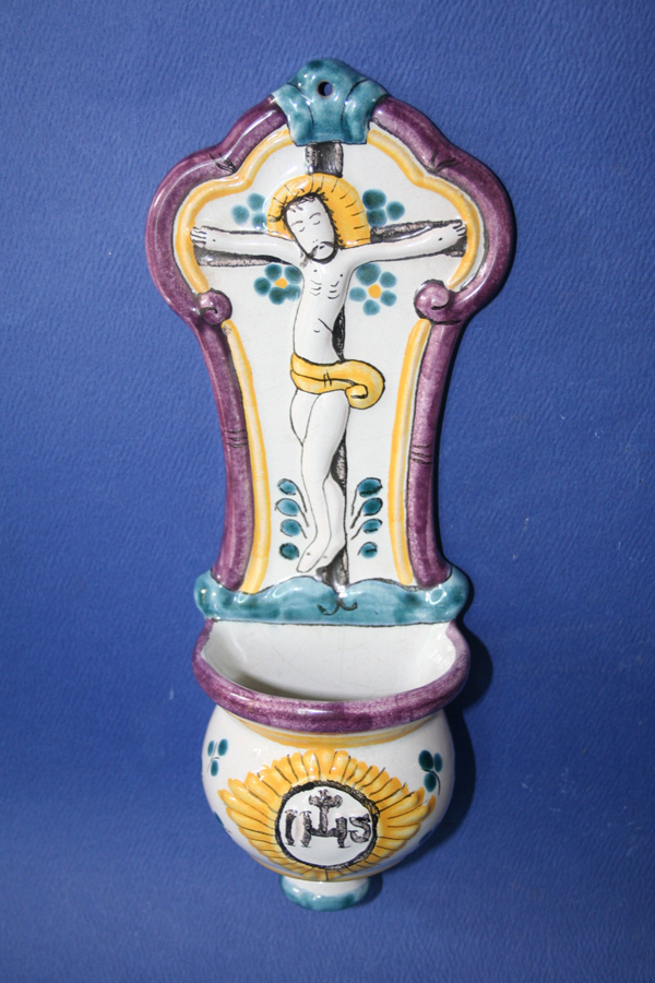 Miska je ručne točená na kruhu, spájaná s reliéfnou zadnou časťou vtláčanou (odlievanou) hlinou do sadrovej formy. Autor použil bielu kryciu glazúru a majolikové farby.